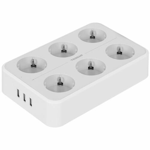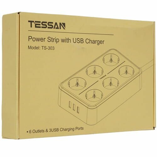 Сетевой фильтр TESSAN TS-303, 2.0м, 6 розеток, 3 USB, цвет: серый