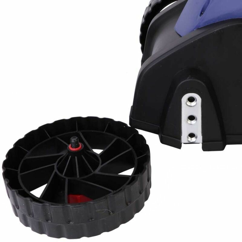 | Минусы: | Хлипковатая ручка и кнопка включения. Пришлось колхозить сразу, " допиливать напильником" ... Настройка высоты скашивания путем перекручивания колес - не совсем удобно и не заметно разницы. |