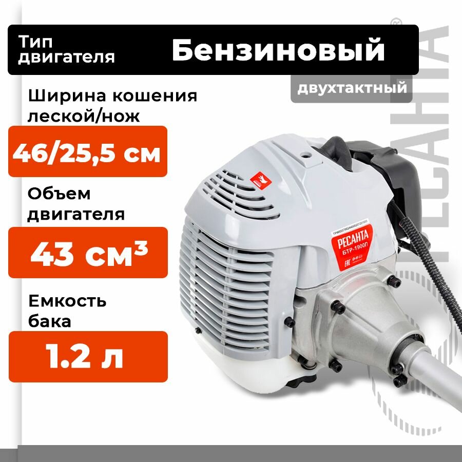 Триммер бензиновый РЕСАНТА БТР-1900П, 2.58 л.с., 46 см