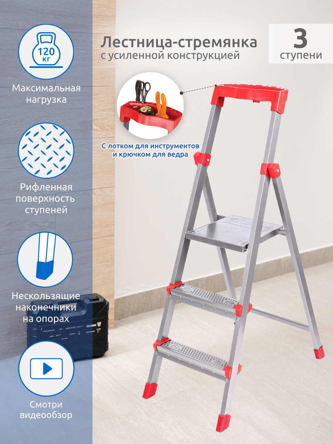Ниже Вы можете прочитать отзывы на Стремянка 3 ступени, стальная, ознакомится с подробными характеристиками, посмотреть интересные обзоры и фотографии на Стремянка 3 ступени, стальная.
