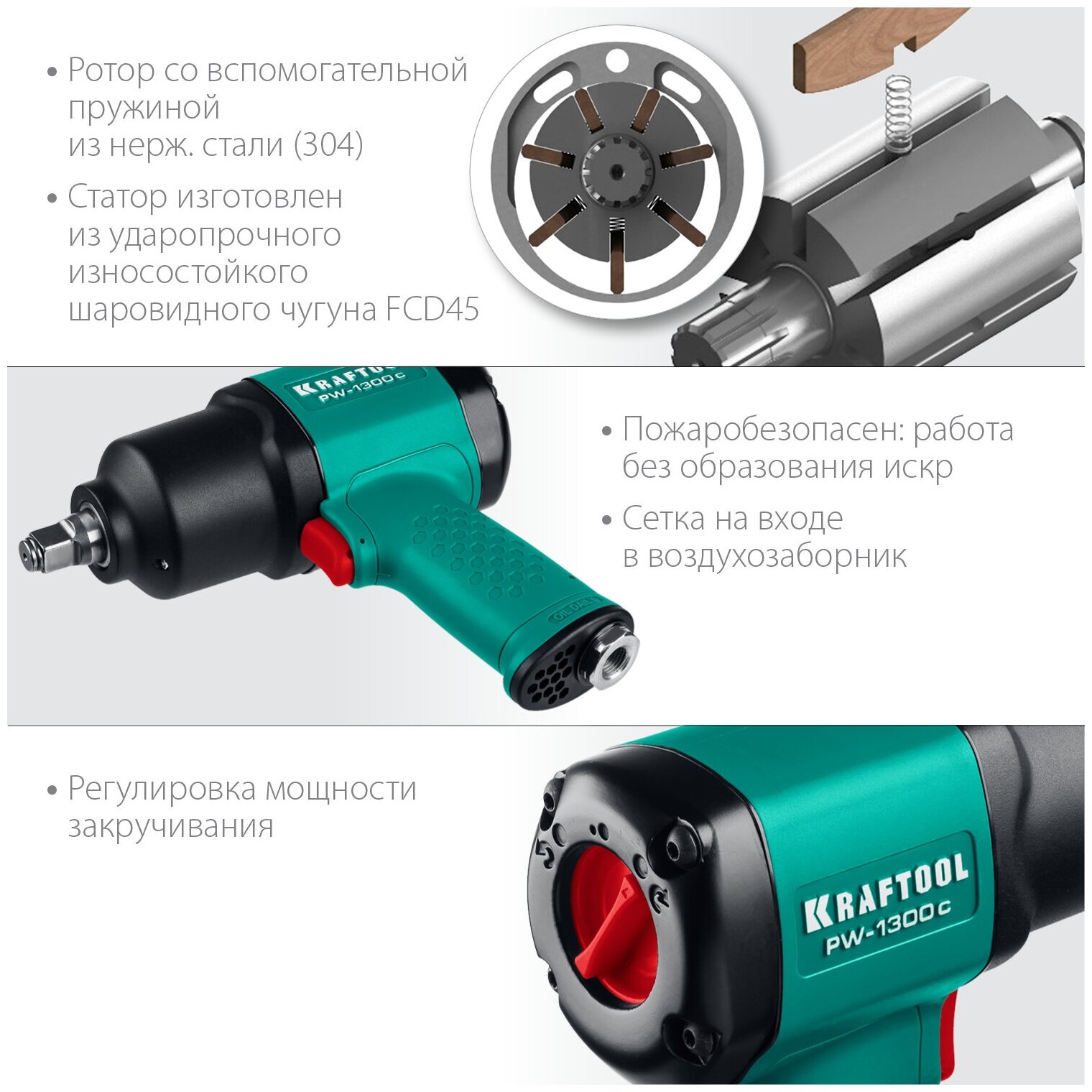 KRAFTOOL PW-1300c ударный пневматический гайковерт, 1/2″, 1300 Нм