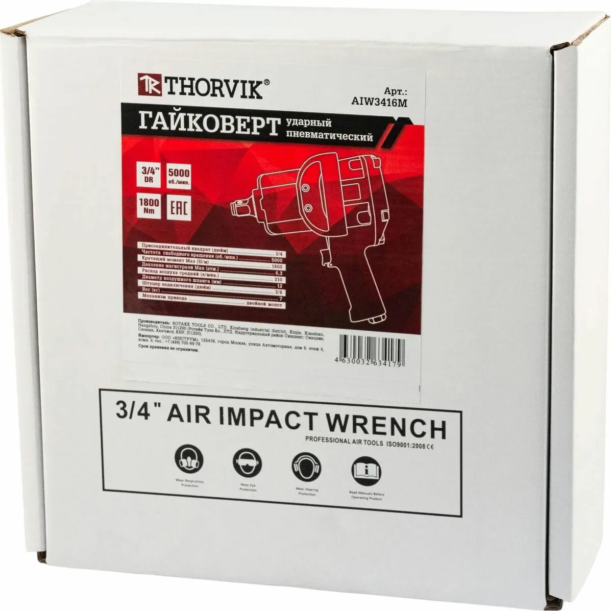 Гайковерт Пневматический 3/4"Dr 5000 Об/Мин, 1800 Нм Aiw3416m Thorvik THORVIK арт. AIW3416M
