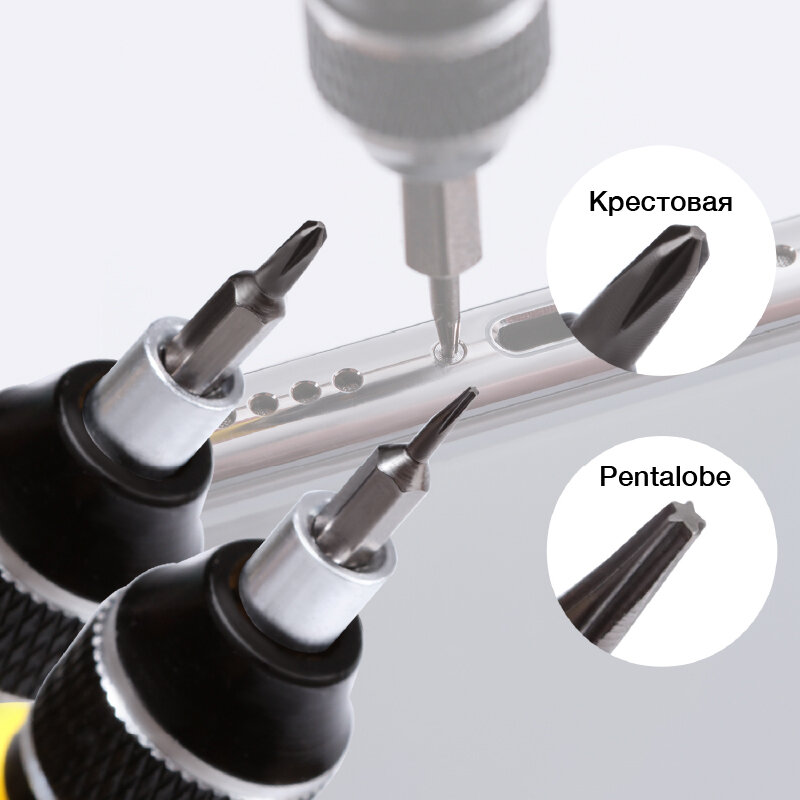 | Плюсы: | Хороший набор, подходит на все смартфон, удалось починить свой телефон благодаря этому инструменту |