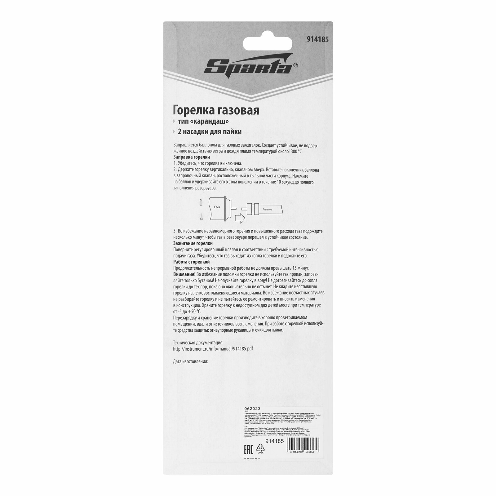 Купить SPARTA 914185 Горелка газовая перезаправляемая карандаш большая с насадками SPARTA
