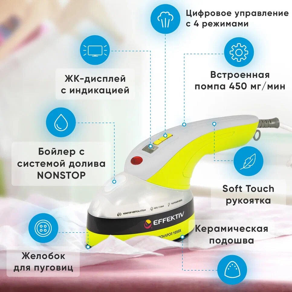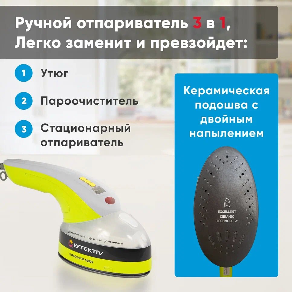 Ручной отпариватель / Паровой утюг Effektiv TurboVapor 1050X с непрерывной подачей пара