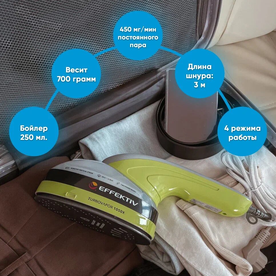 СохранитьРучной отпариватель / Паровой утюг Effektiv TurboVapor 1050X с непрерывной подачей пара Зелёный интересное: