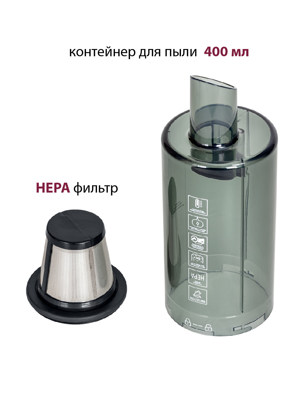 Беспроводной вертикальный пылесос циклонного типа 2 в 1 VC454S Pioneer с 3 насадками и моющимся HEPA-фильтром, 20 Вт