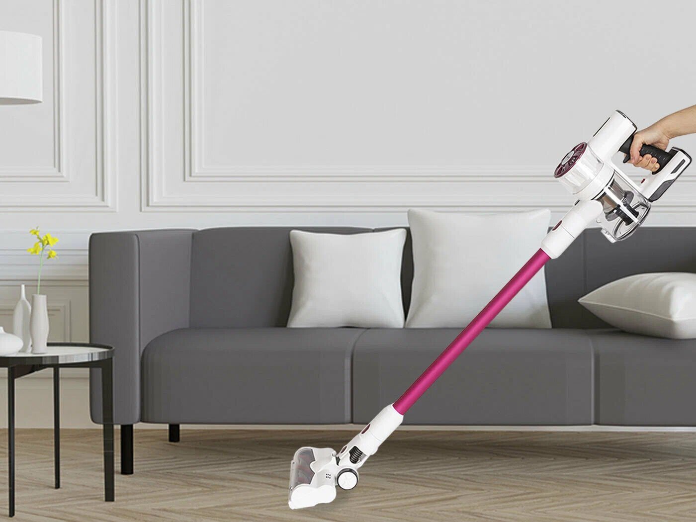 С маленьким ребенком на руках удобно и без напряга можно пропылесосить. |