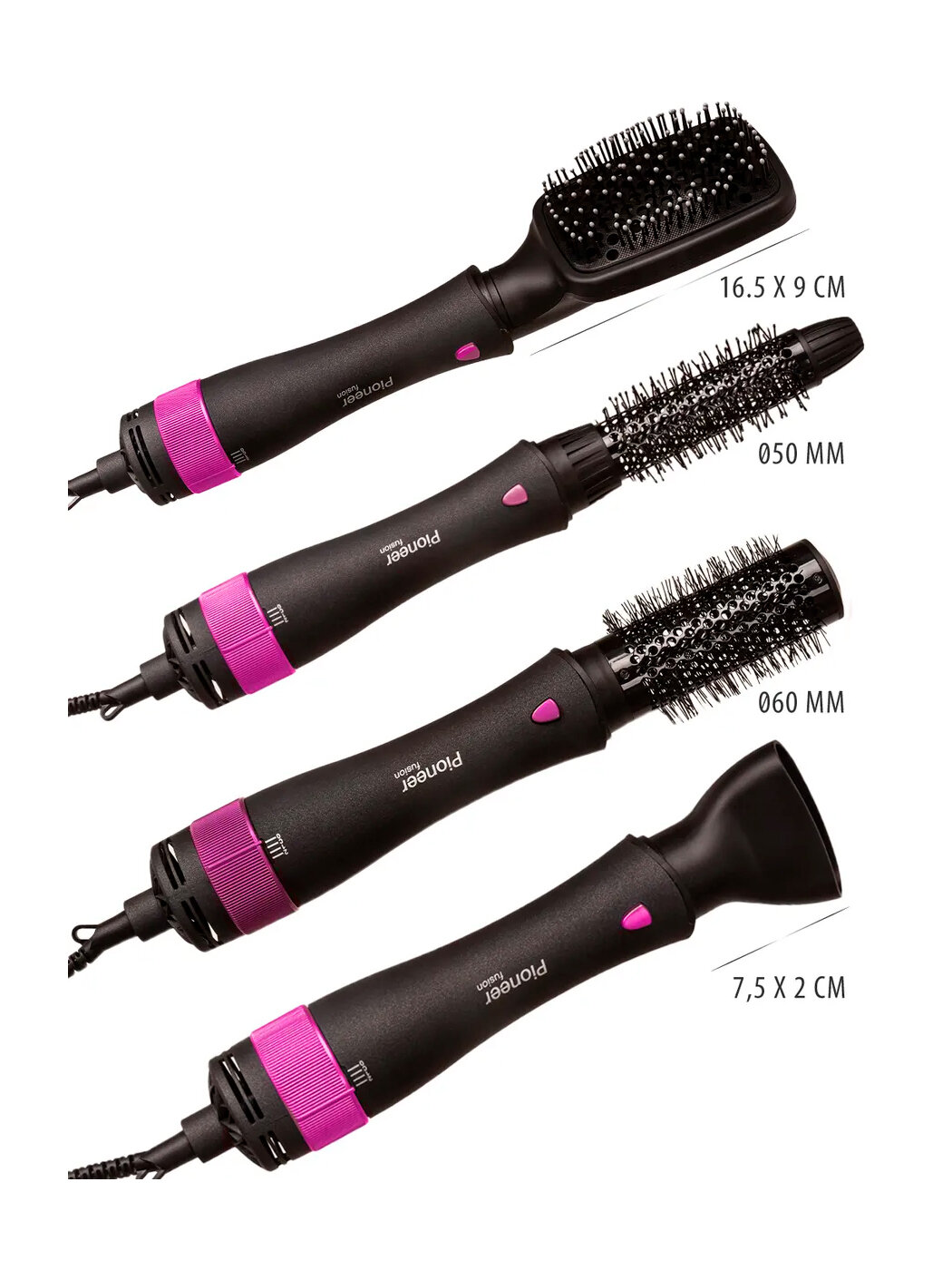 Купить Фен-щетка 4 в 1 Pioneer HB-1001D с покрытием SOFT TOUCH, 4 насадки, 2 режима нагрева, функция холодного воздуха, 1000 Вт