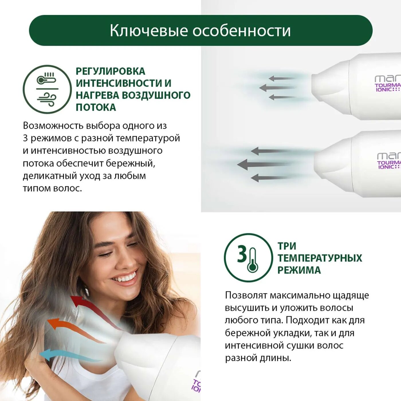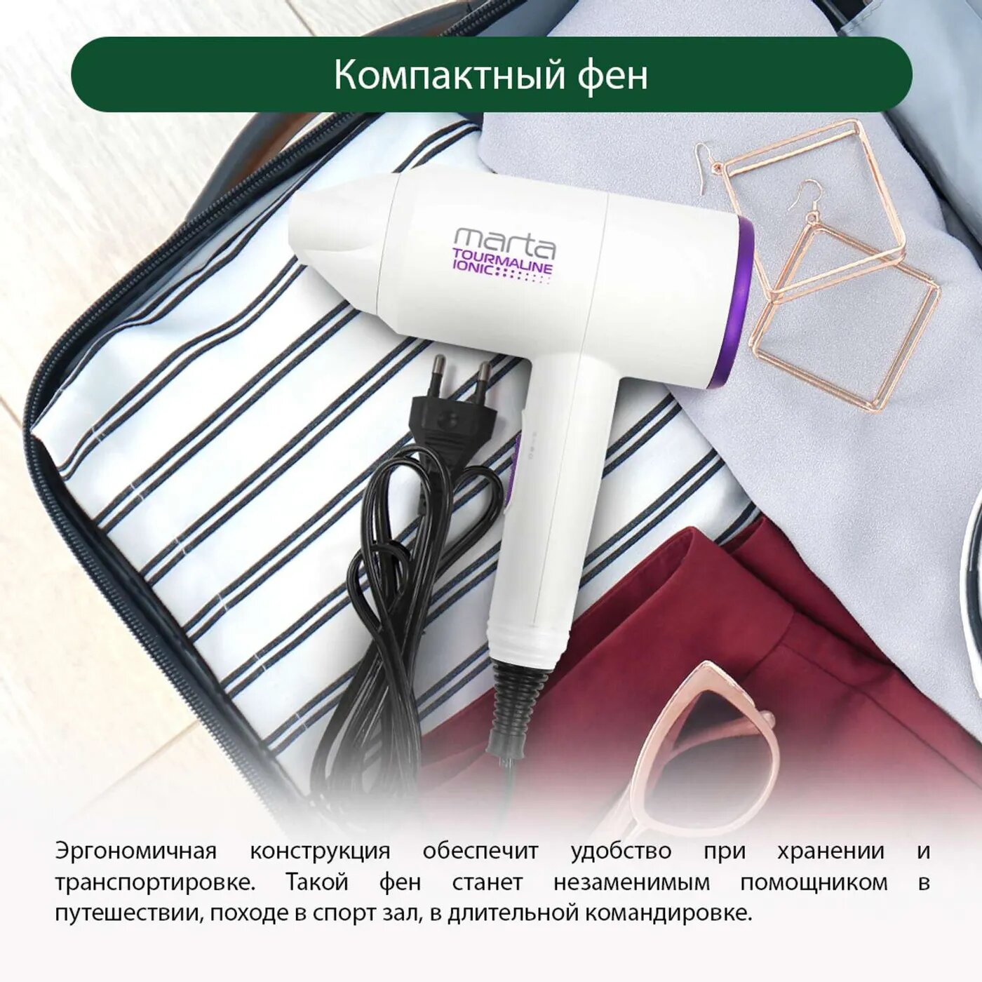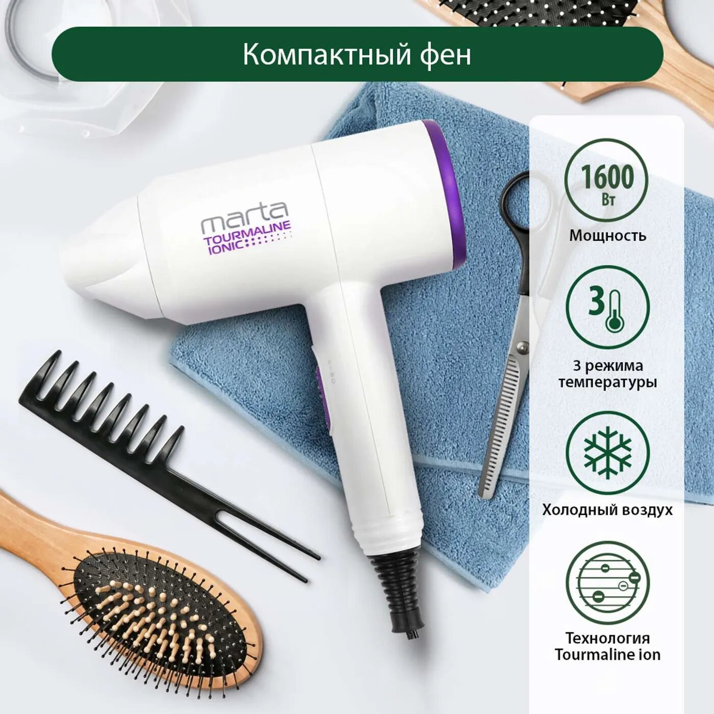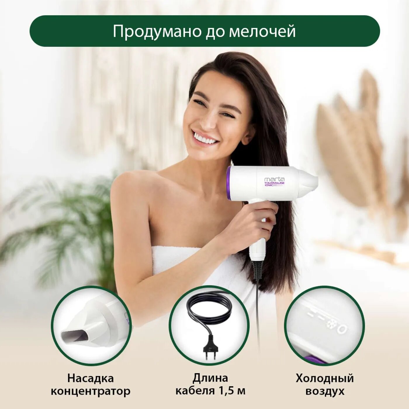 Купить Фен MARTA MT-1268 светлый чароит Технология tourmaline ionic