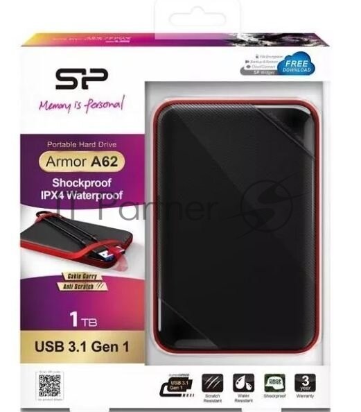 Внешний жесткий диск 1000Gb Silicon Power Armor A62S черный/красный USB 3.1 (sp010tbphd62ss3k)