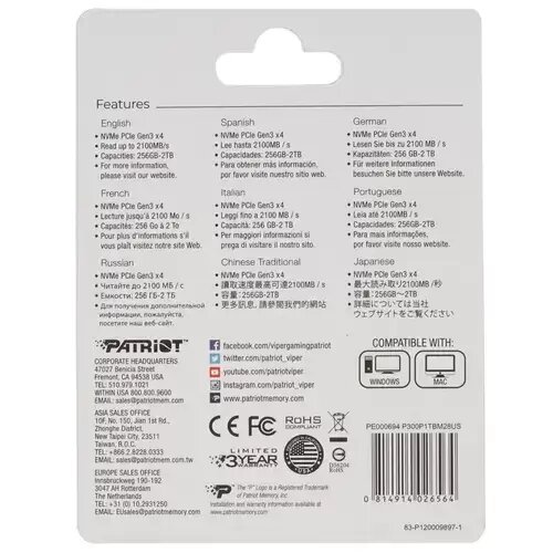 Ниже Вы можете прочитать отзывы на Твердотельный накопитель Patriot Memory P300 1 ТБ M.2 P300P1TBM28, ознакомится с подробными характеристиками, посмотреть интересные обзоры и фотографии на Твердотельный накопитель Patriot Memory P300 1 ТБ M.2 P300P1TBM28.