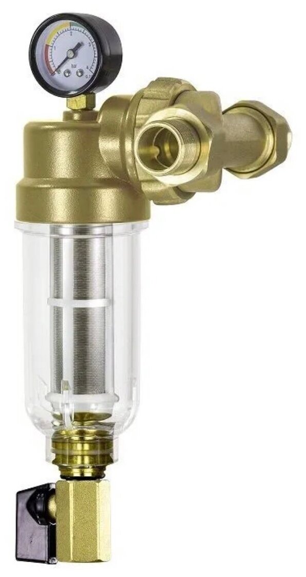 Фильтр свободного вращения с манометром угловой самопромывной 1/2" JH-1002W3 комплект (латунь + стекло)