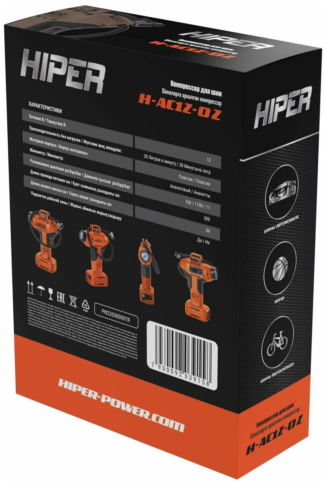 Компрессор автомобильный HIPER H-AC12-02, 11 Атм, оранжевый