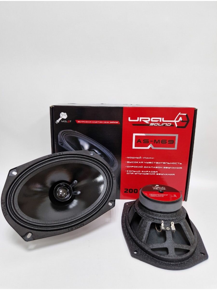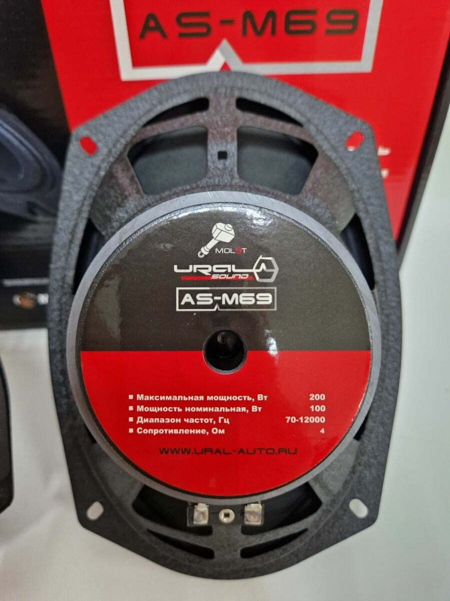 Колонки автомобильные Ural Molot AS-M69 (без решетки) 200 Вт 94дБ 4Ом 15x23 см (6x9 дюйм), широкополосные, однополосные