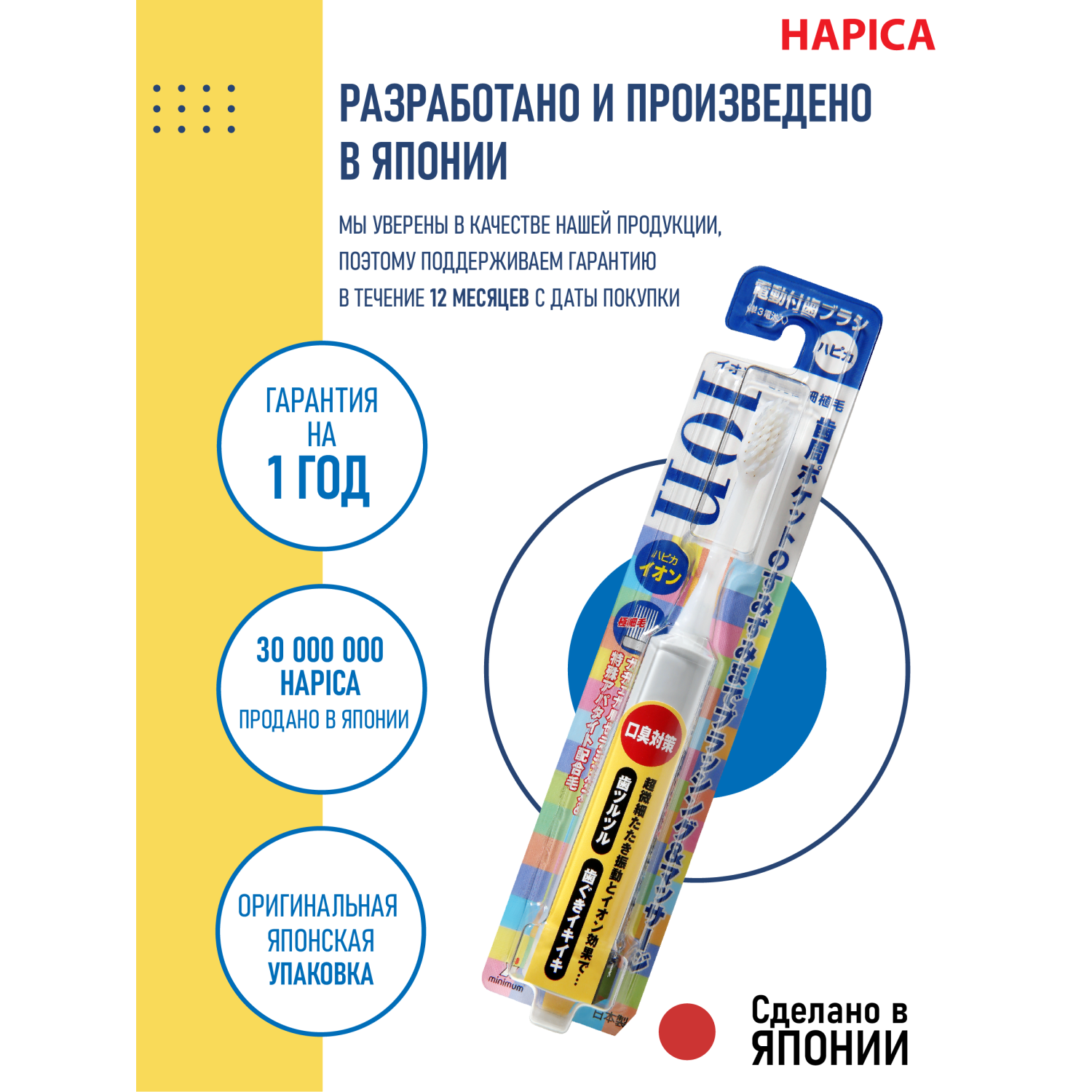 Hapica / Электрическая зубная щётка Hapica DBM-1H Minus-ion звуковая ионная 1 шт