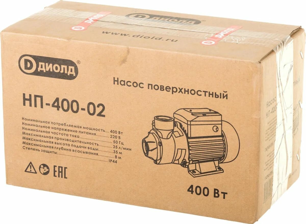 Насос поверхностный диолд НП-400-02, 400 Вт, 35 л/мин, высота подъема 35 м, производитель россия