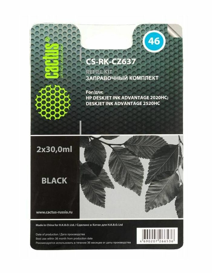 СохранитьЗаправочный набор Cactus CS-RK-CZ637 черный для HP DeskJet 2020/2520 (2*30ml) интересное: