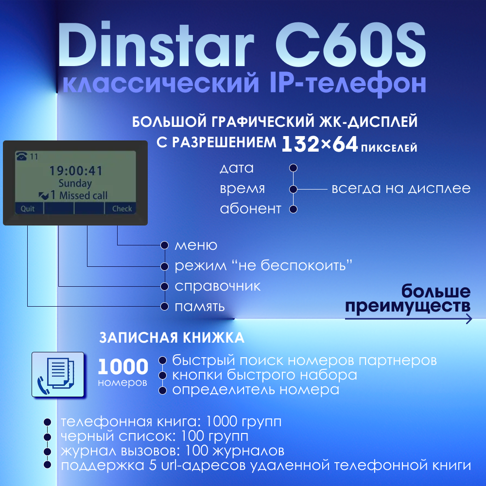 IP-телефон Dinstar C60S черный интересное: