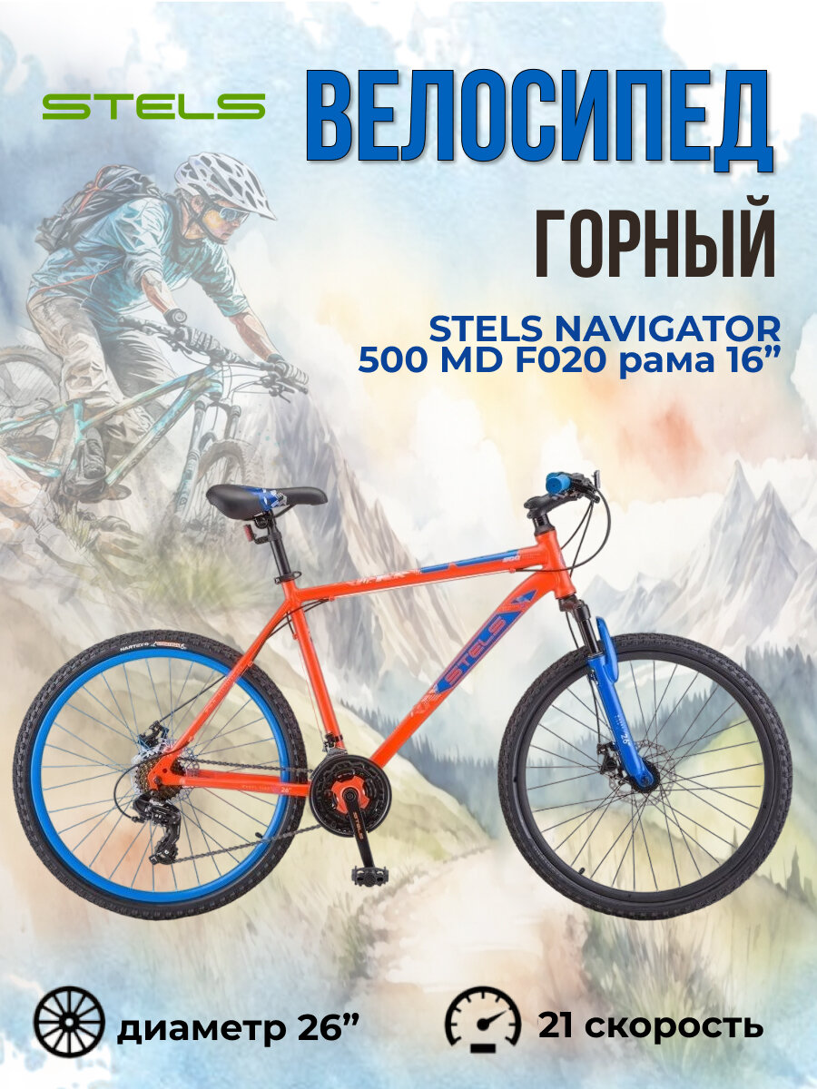 Горный велосипед Stels Navigator 500 MD 26 F020, год 2021, ростовка 16, цвет Синий-Красный