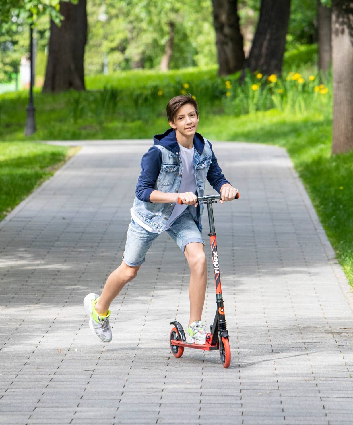 | Плюсы: | Хороший, надежный самокат. Покупали ребёнку на 5 лет. На нижнем положении руля ребёнку ростом 122-удобно. На верхнем-удобно маме ростом 175. Так же можно кататься вместе, т.к. самокат до 100кг. Везёт нормально, но дека для двоих маловата. Накат хороший, амортизация ощущается. По плитке, естественно, стучит, но по асфальту летит быстро и бесшумно. С механизмом складывания проблем не возникло, складываем ежедневно. |