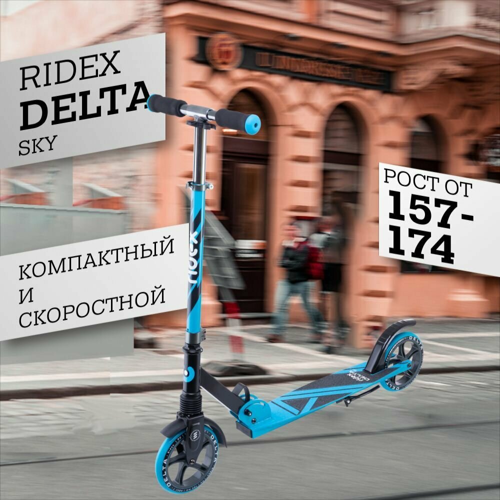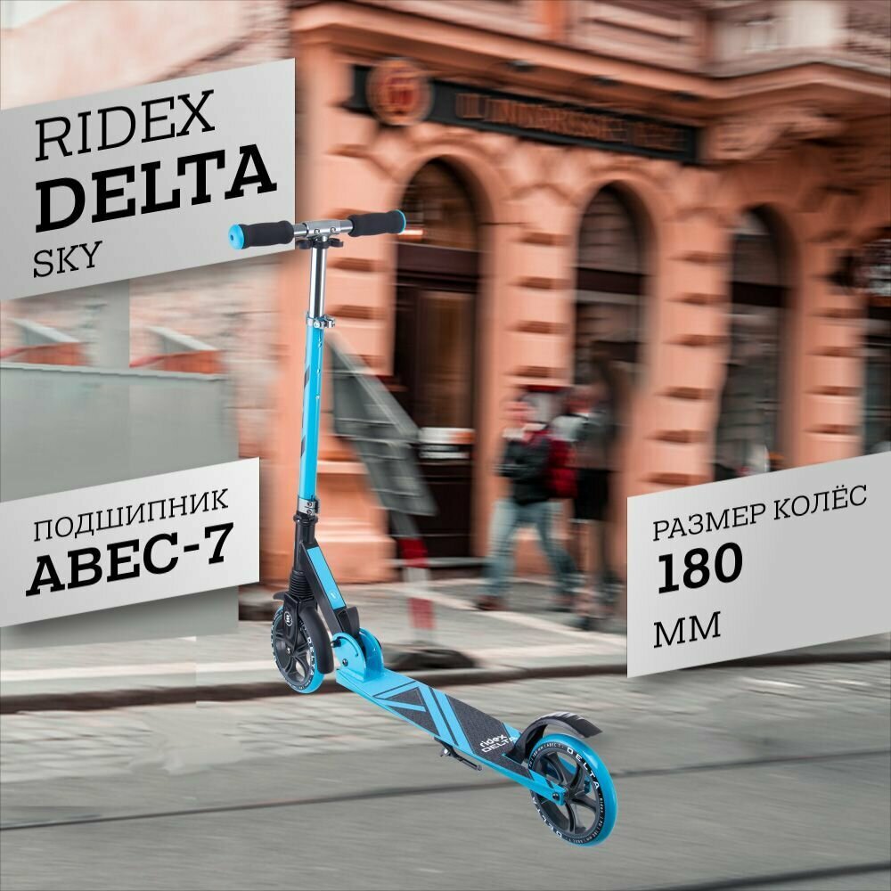 Самокат городской для взрослых и подростков, 2-колесный Delta 180 мм, голубой. Ridex. УТ-00018374