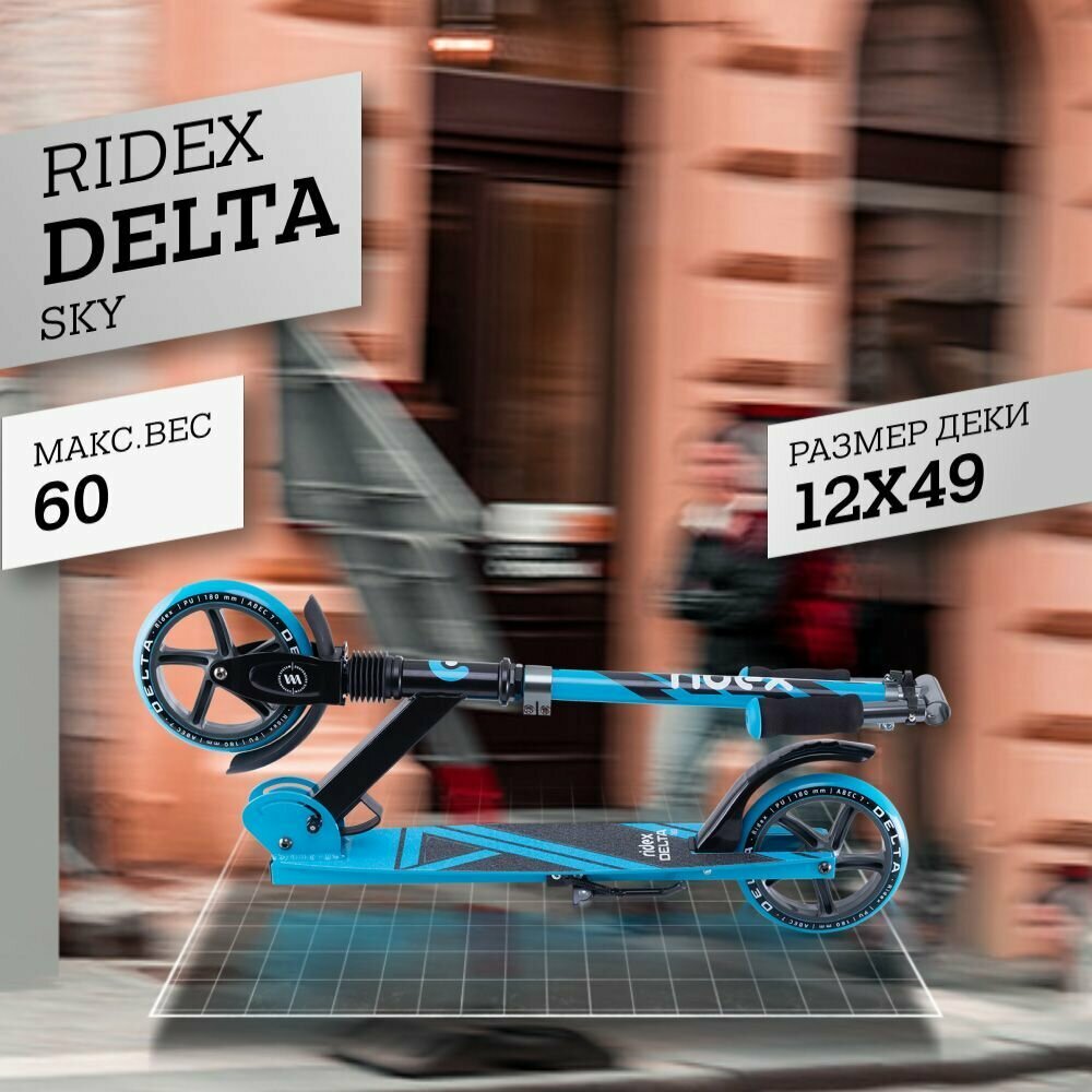 Самокат Ridex 2-колесный Delta 180 мм, голубой