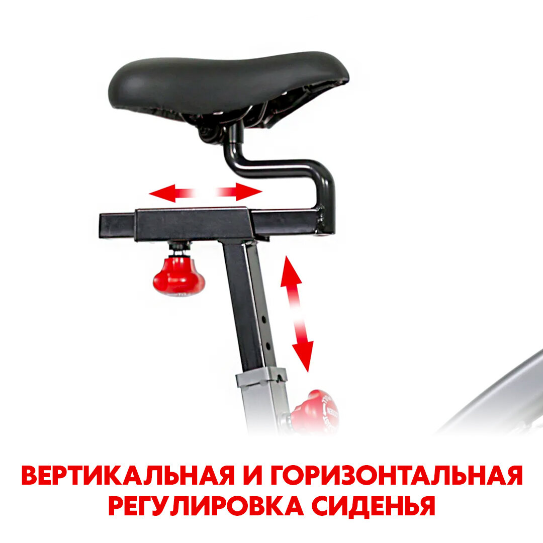 Всё удобно в нем, сиденье регулируется, руль регулируется. При занятии не скользит. никуда не уезжает, так сказать, ровно стоит на месте при моем большом весе (108 кг).