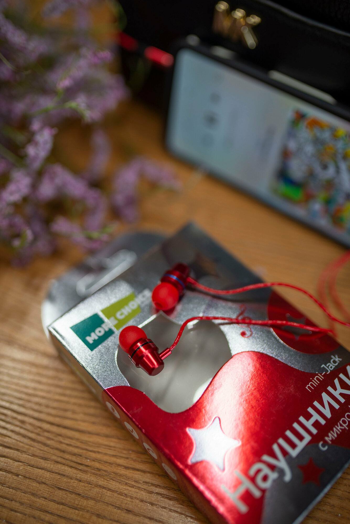 Наушники вакуумные для AUX разъема с микрофоном и регулятором громкости длина 1.2м More Choice P71 Red