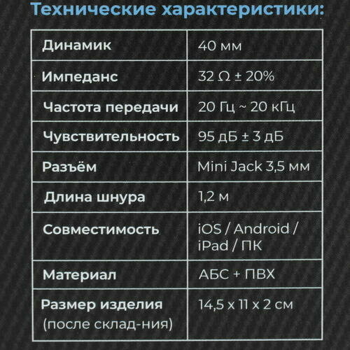 | Отзыв: | Слушаю в них музыку на перерывах. В целом доволен, но провод чутка длиноват, мне бы и метра хватило, но это мелочи. А так дизайн стильный, черный цвет, амброшуры мягкие (вроде искуственая кожа), регулируются (легко и удобно), разъем универсальный. Еще хочу отдельно отметить компактные размеры, плюс складывается и после совсем мало места занимают. |
