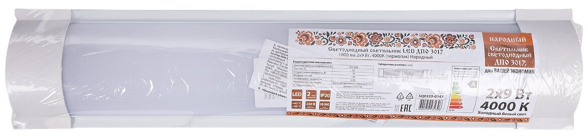Купить TDM Светодиодный светильник LED ДПО 3017 1800 лм 2х9 Вт, 4000К термопак Народный SQ0329-0147