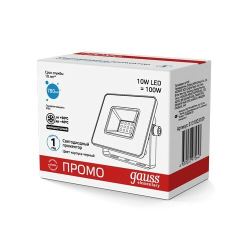 Прожектор светодиодный Elementary 10Вт 780лм IP65 6500К черн. Промо Gauss 613100310P