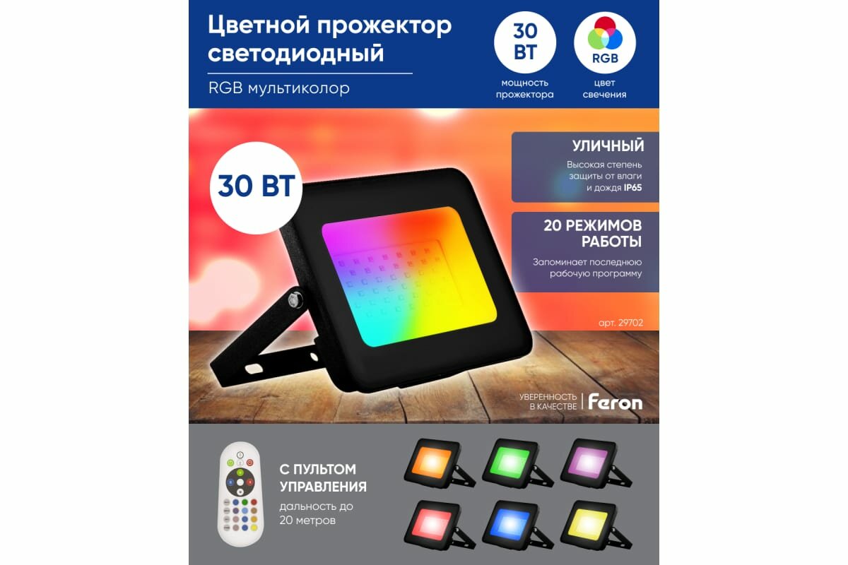 Прожектор светодиодный Feron LL-612 29702, 30 Вт, свет: RGB