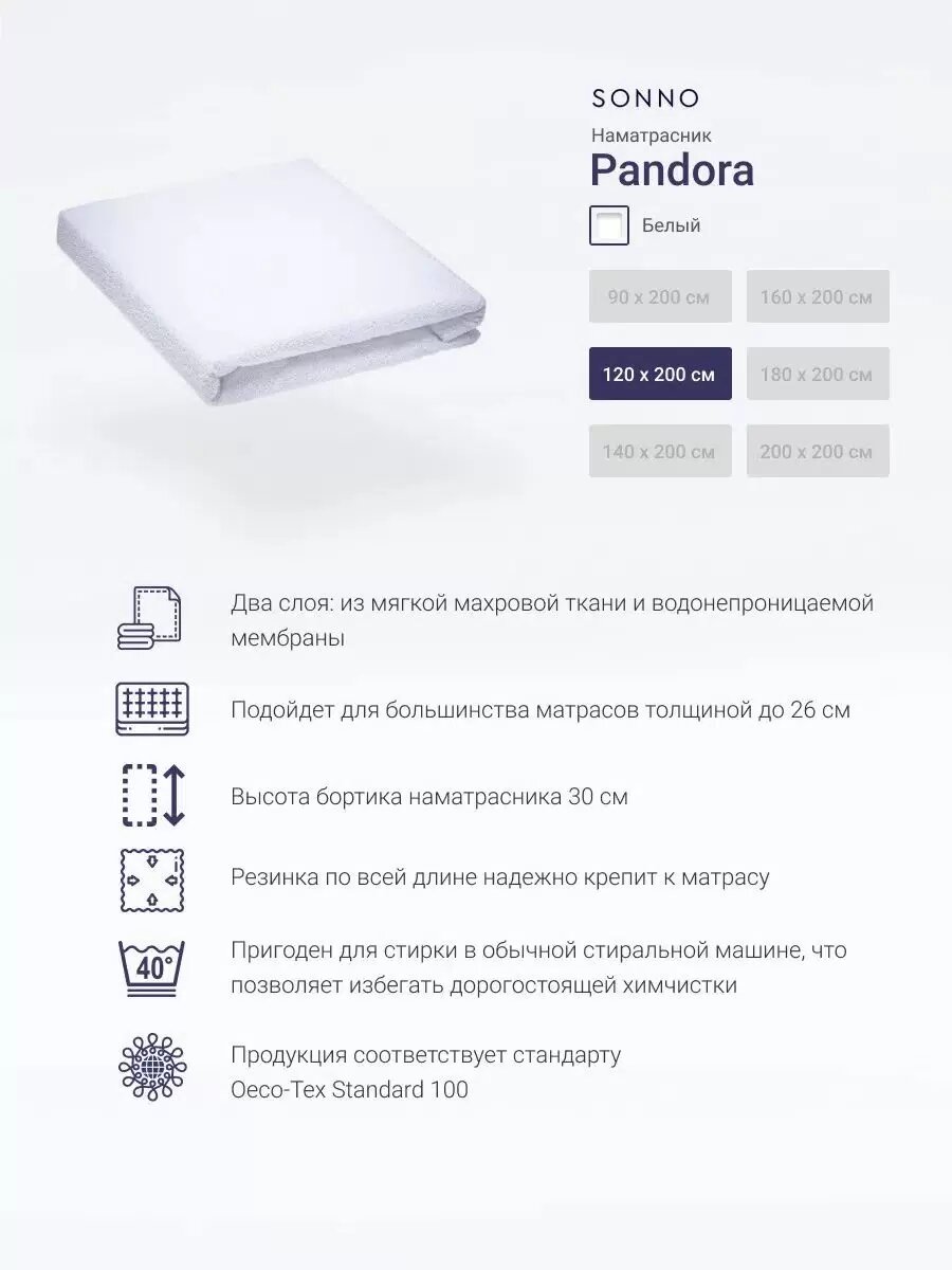 Sonno Наматрасник Pandora 180x200 махровый непромокаемый на резинке по всей длине 4607411225129 .