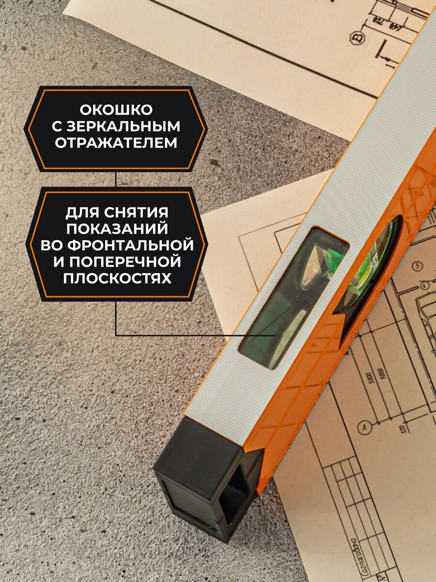 Уровень коробчатый 3 глаз. Вихрь 73/11/4/18 60 см оранжевый
