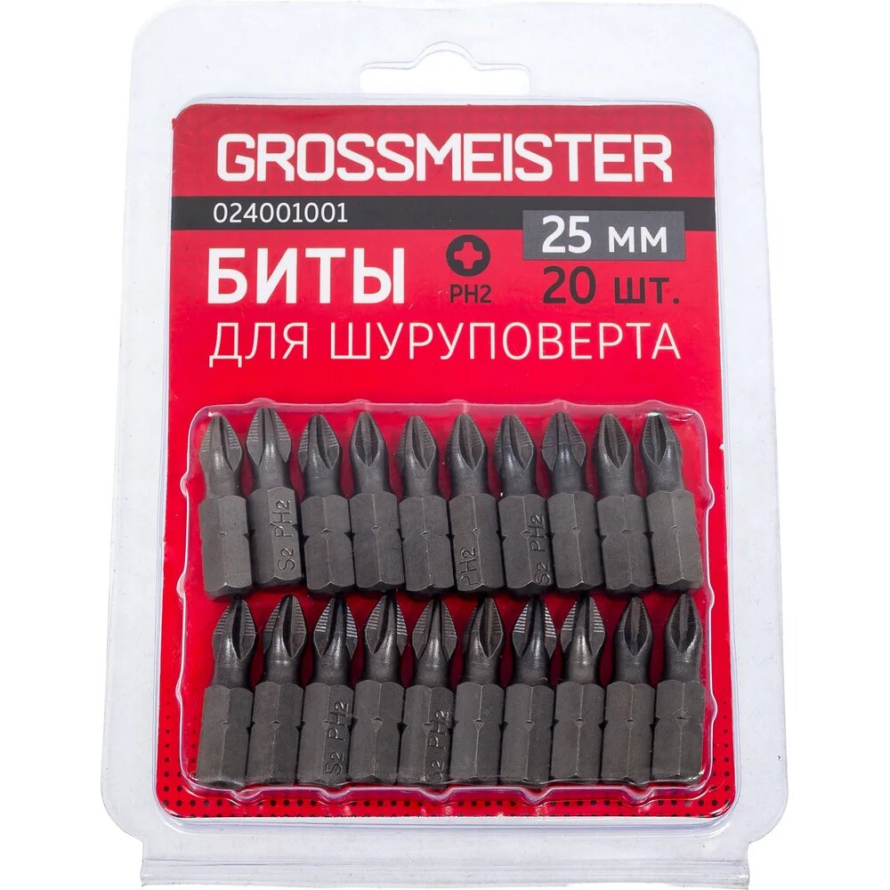 Биты для шуруповерта PH2 (20 шт, 25 мм) GROSSMEISTER 024001001