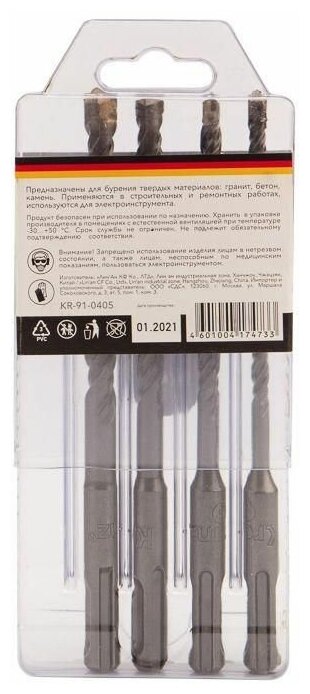 Набор буров по бетону 5-6-8-10х160х100 мм, 4 шт., в пластиковой коробке SDS PLUS Kranz 1 шт арт. KR-91-0405