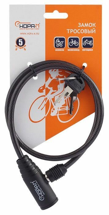 Замок велосипедный с системой запирания на ключ нора-м №24 размер ф6х650мм черный (13910)
