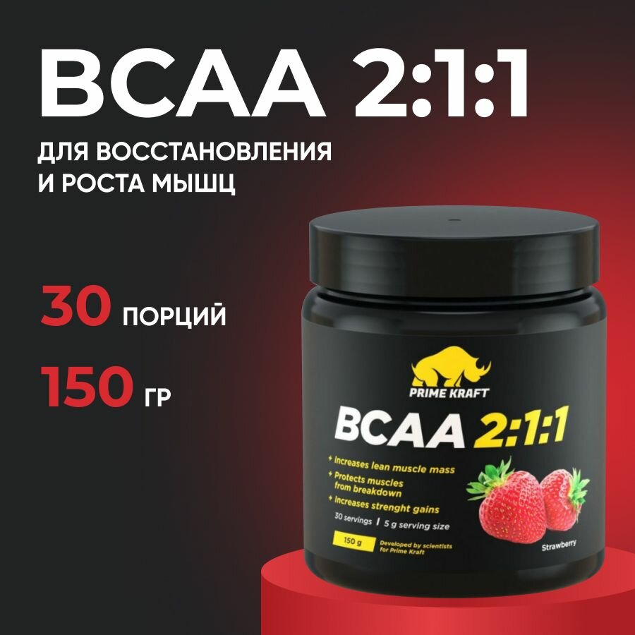 Prime Kraft BCAA - Аминокислотный комплекс 2:1:1 с клубничным вкусом, 150 г