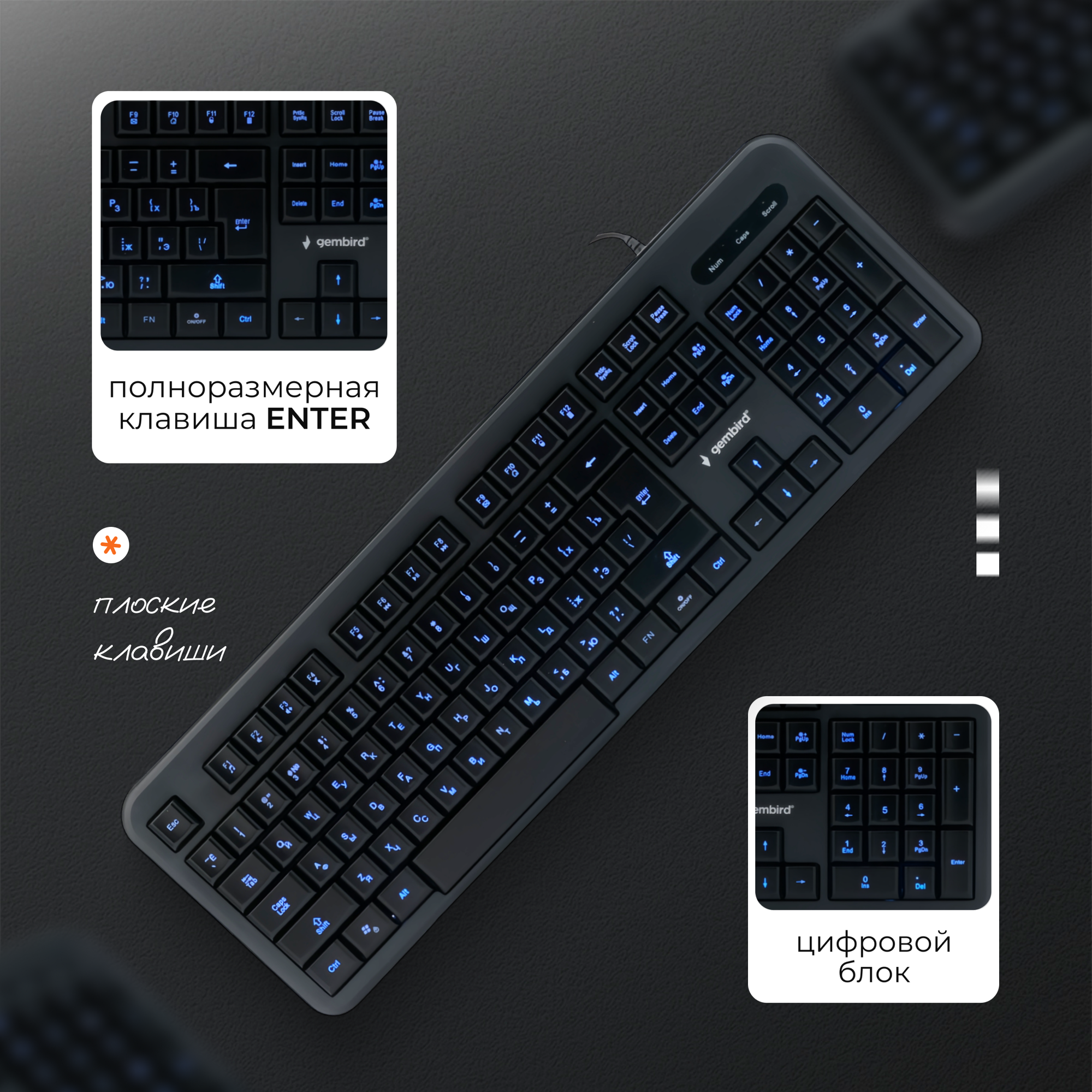 Купить Клавиатура Gembird Клавиатура Gembird KB-200L, подсветка, черный (USB) (ret)