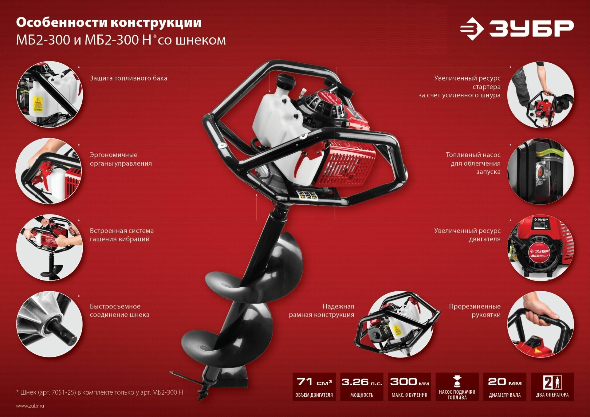 Мотобур Зубр МБ2-300, d=60-300 мм, 71 см3