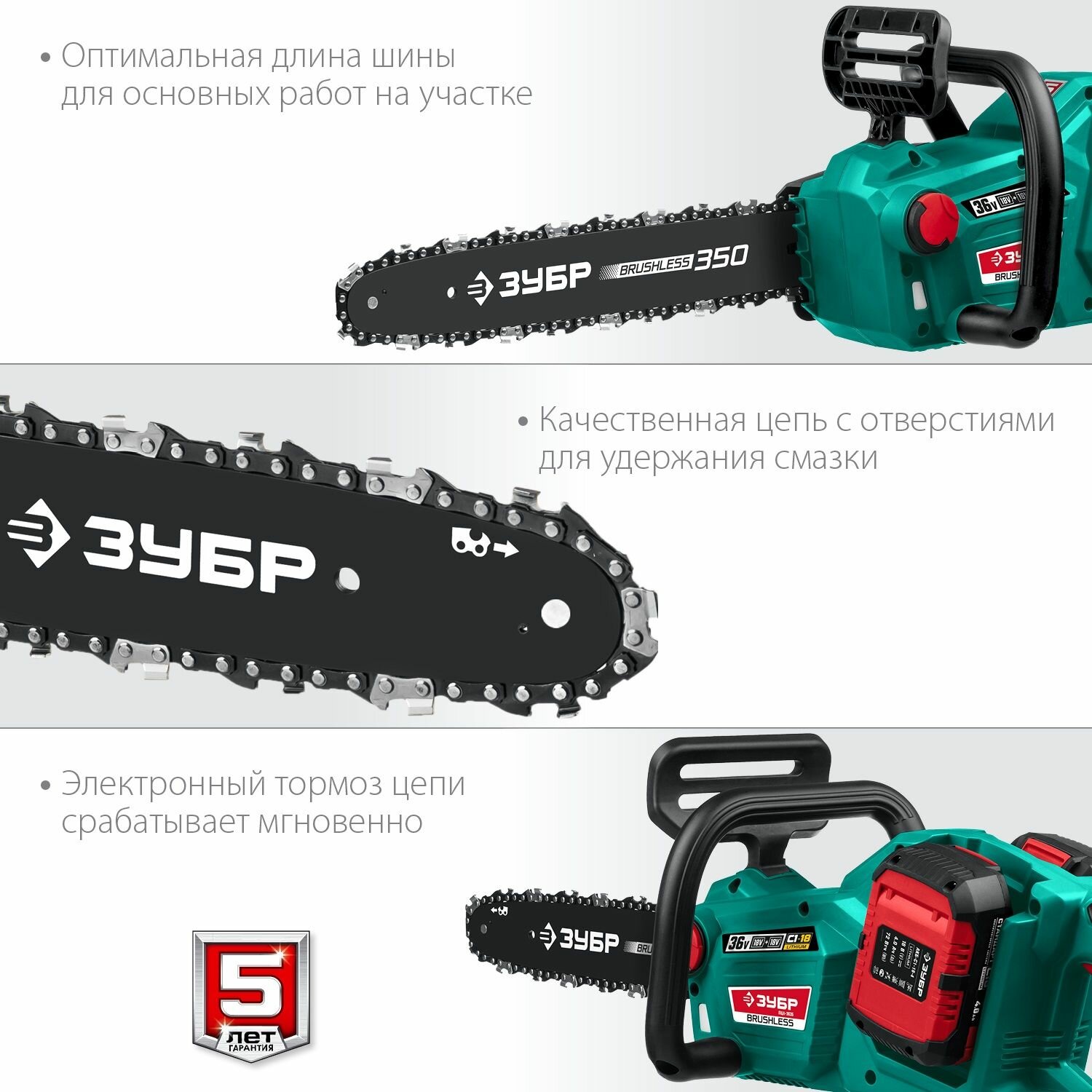 ЗУБР ПЦЛ-3635-42 36В бесщеточная пила цепная