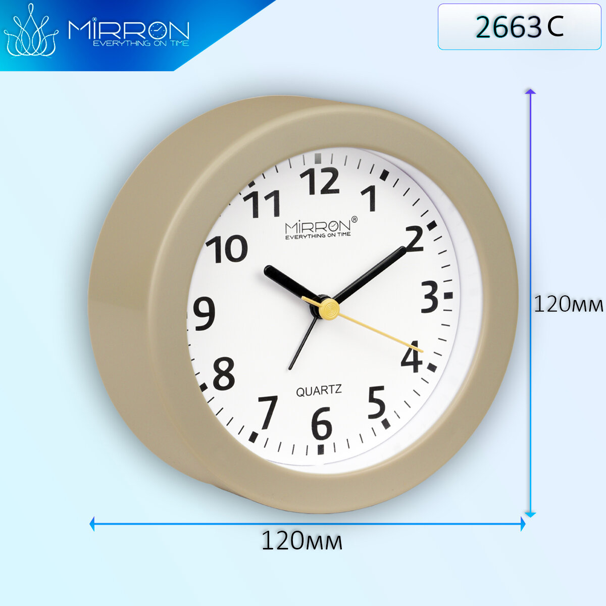 Бежевый будильник MIRRON 2663 С/Часы на тумбочку/Будильник в детскую комнату/Будильник в спальню/Классический, обычный будильник