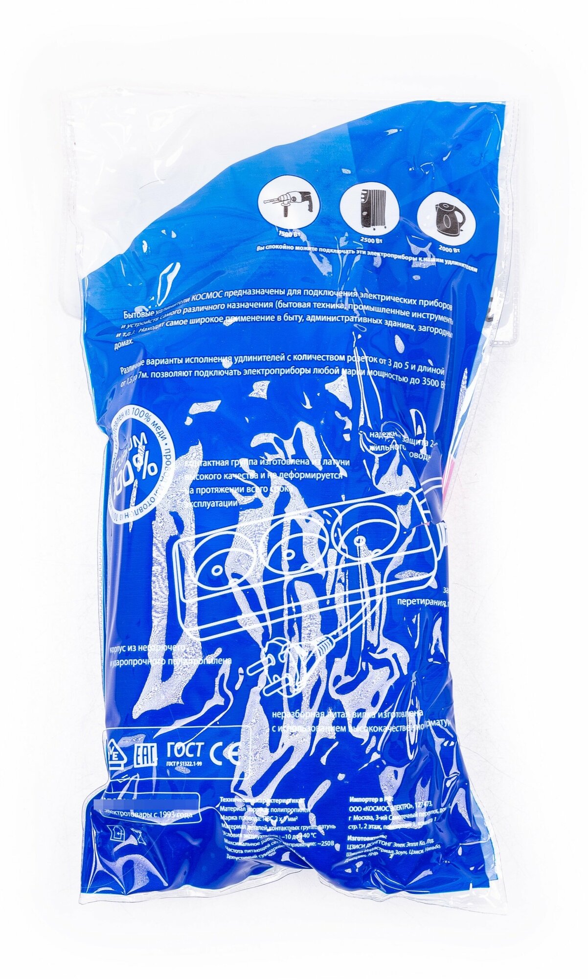 Купить Удлинитель Космос 3х5м без заземл. 16А IP20 ПВС 2х1, YKsm5m-3g(K)