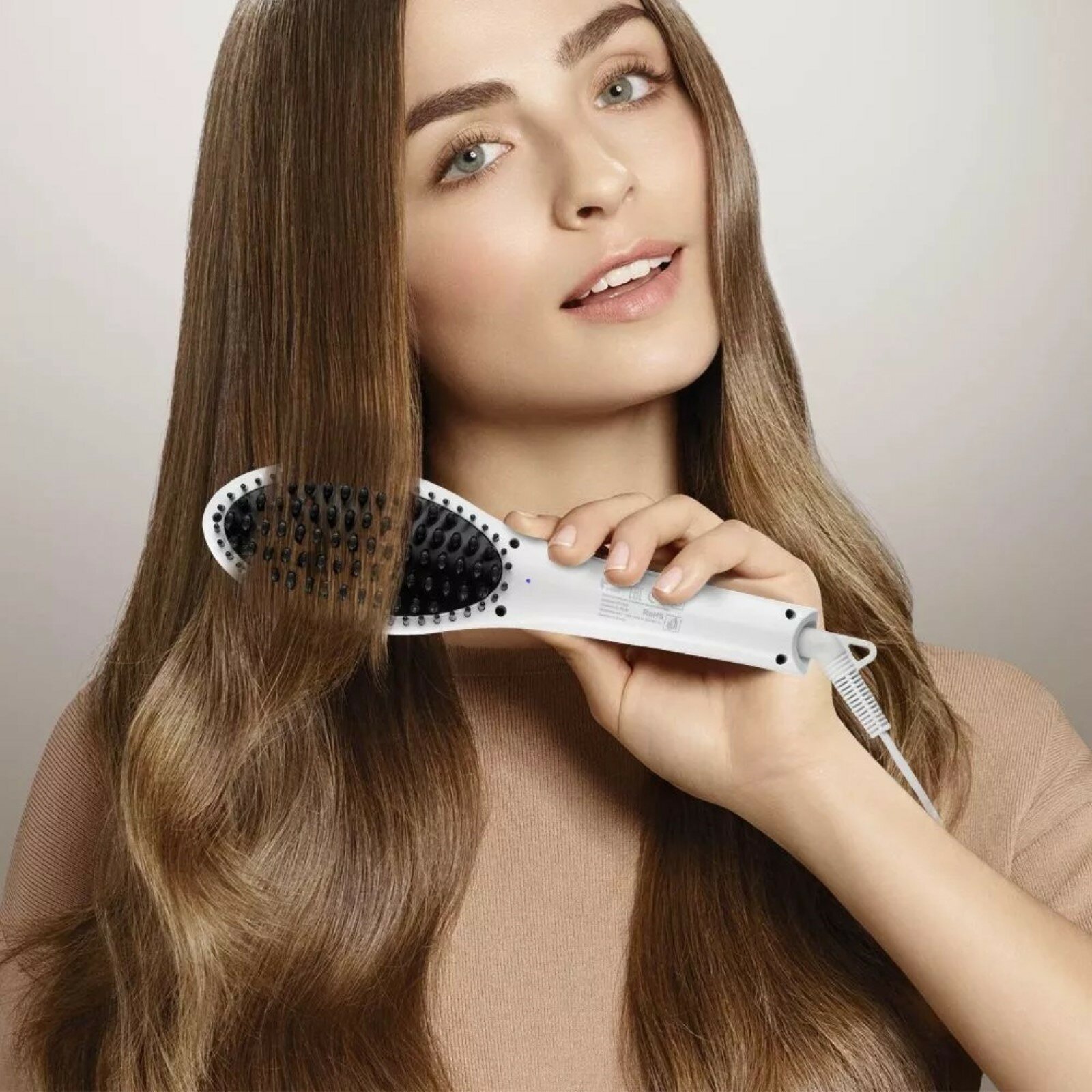 | Дополнительная информация | для тонких, пористых или ломких волос рекомендуется устанавливать температуру 140-170°С, для нормальных – 160-190°С, для жёстких и густых – 180-220°С; расчёсывайте небольшие пряди волос плавными движениями от корней к кончикам |