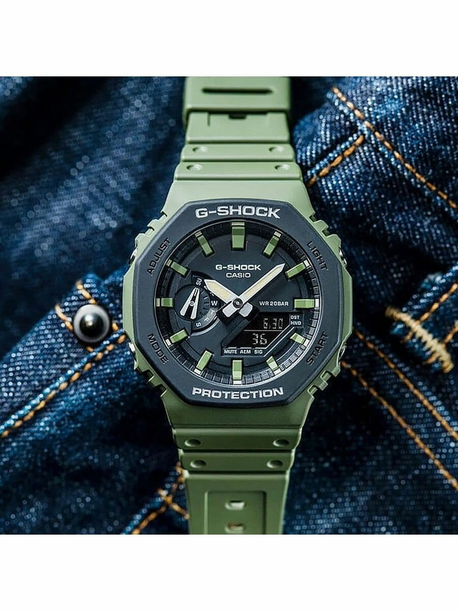 Наручные часы CASIO G-Shock GA-2110SU-3AER кварцевые, будильник, секундомер, таймер обратного отсчета, водонепроницаемые, противоударные, хаки
