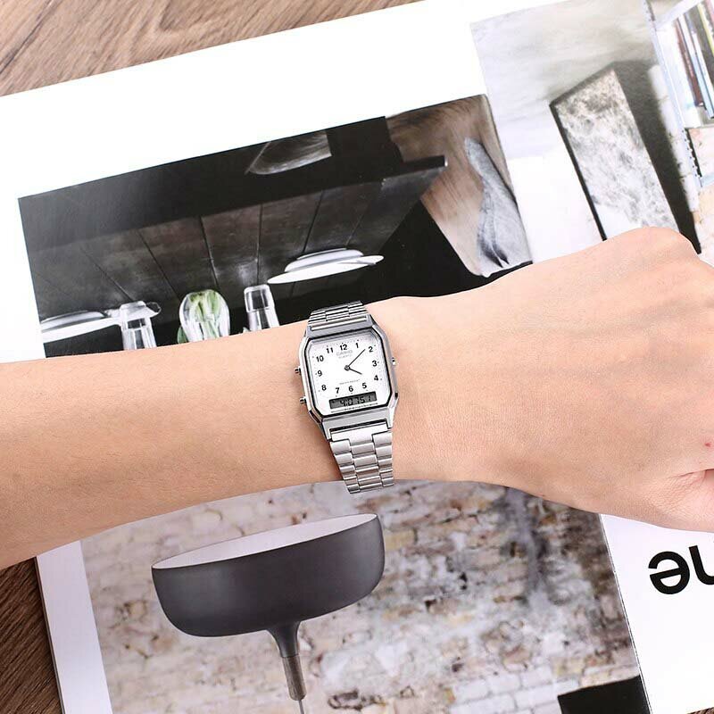 Купить Наручные часы CASIO AQ-230A-7B кварцевые, будильник, секундомер, водонепроницаемые, серебряный