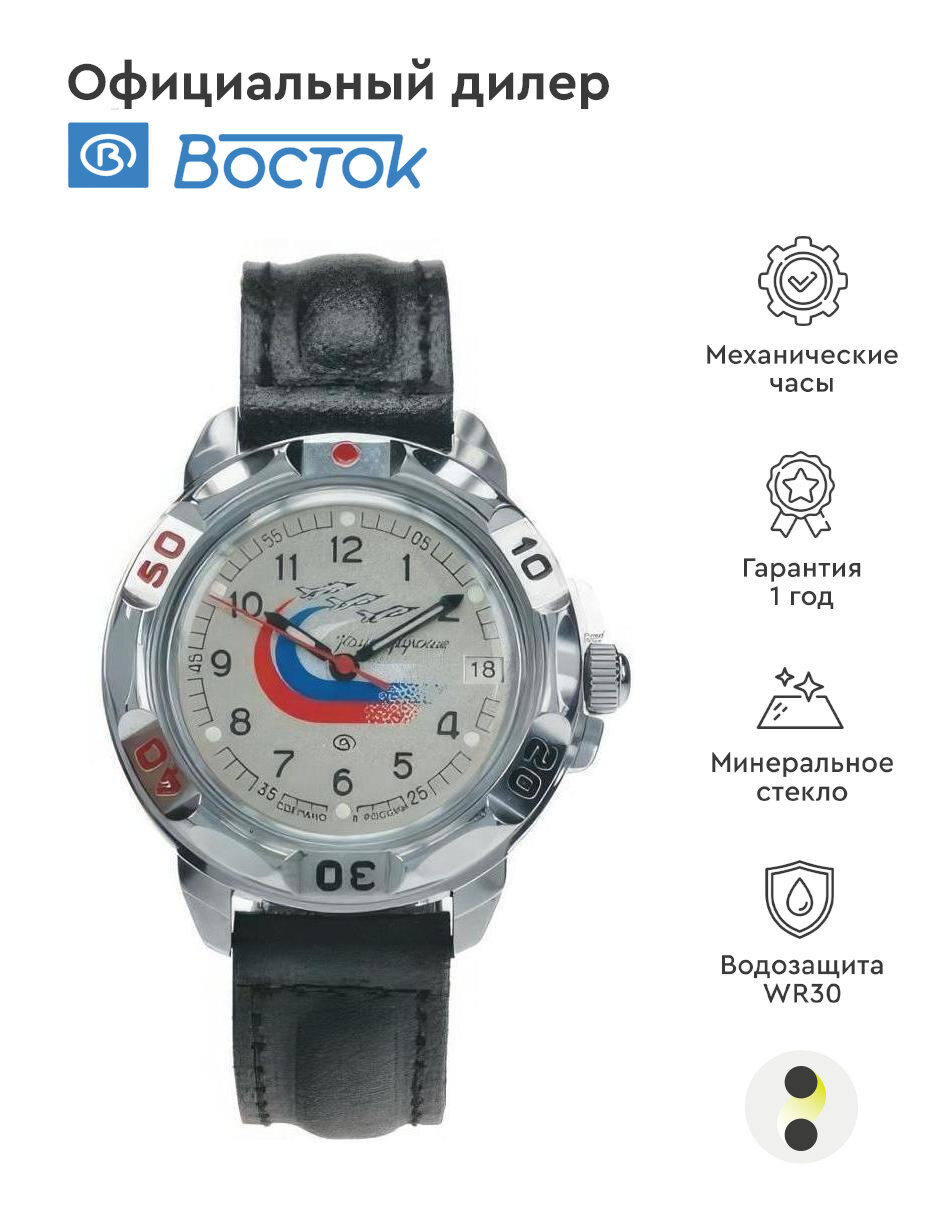 Мужские наручные часы Восток Командирские 431562-classic, натуральная кожа, черный