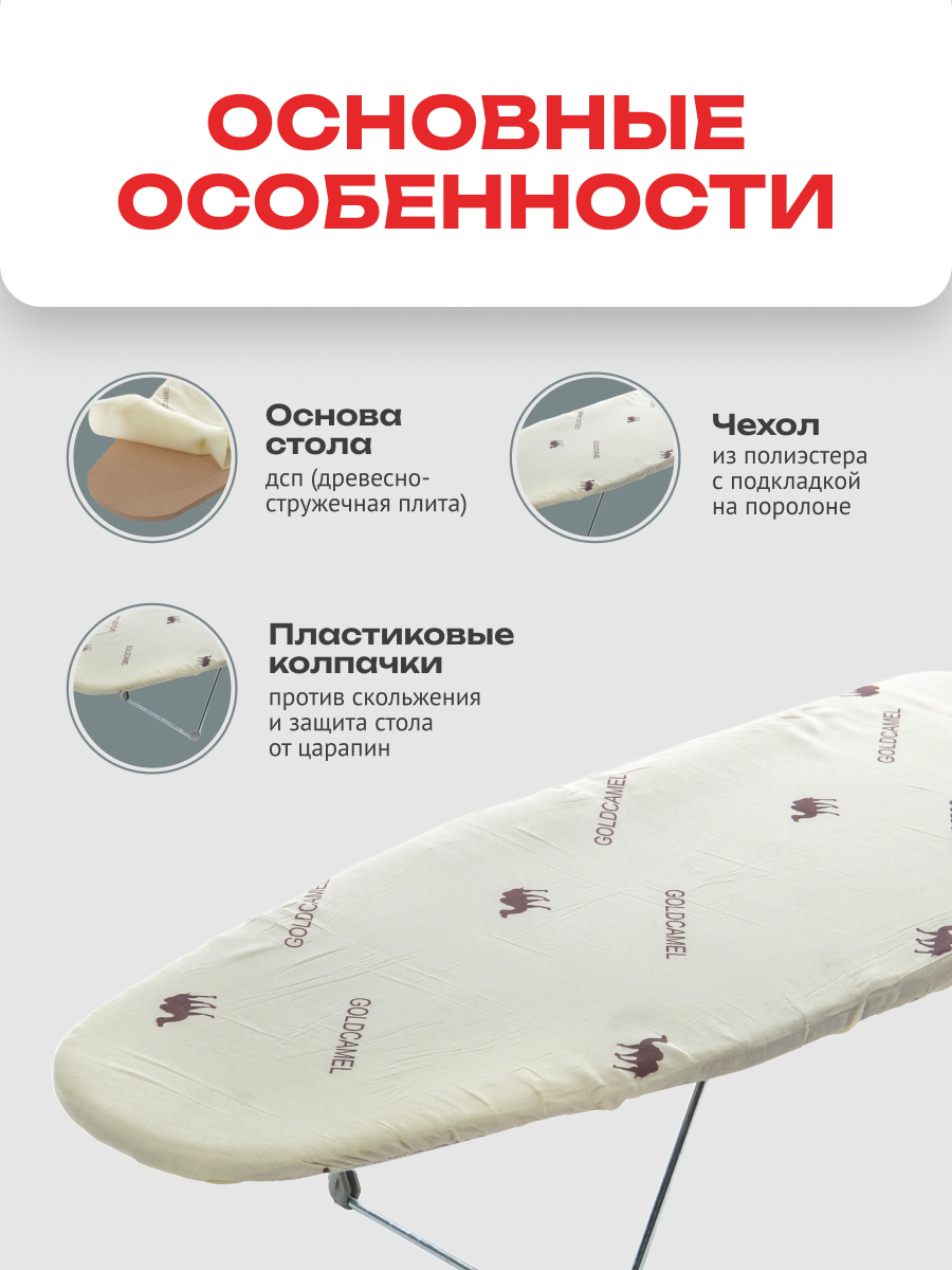 | Плюсы: | Хорошая доска, если нужно что-то быстро погладить. Поставил на стол и готово. Достаточно широкая для своих размеров. |