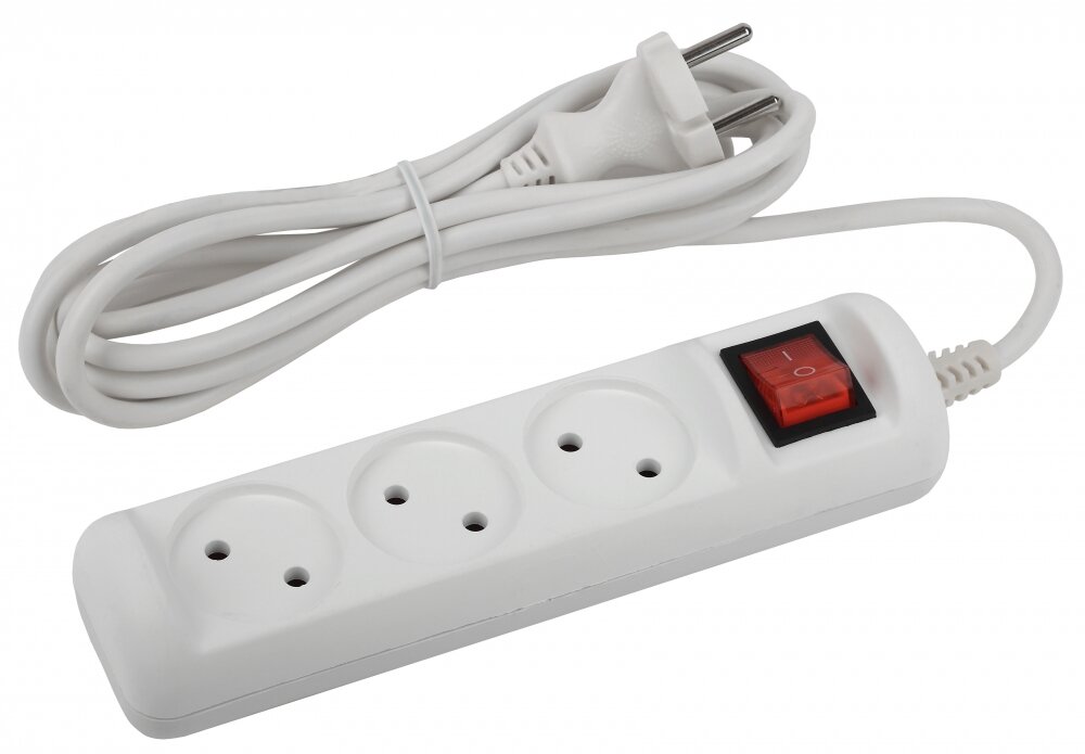 Удлинитель электрический Эра без заземления c выключателем 3 розетки 1,5м, ПВС 2x1мм2, 10А